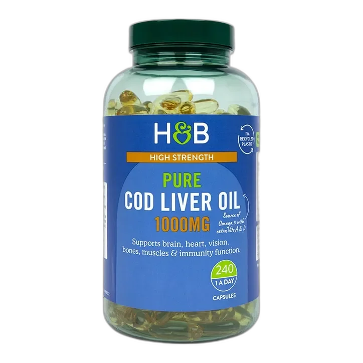Omega 3 fish oils and cod liver oil supplements are a great way of supporting the health of your heart. Holland & Barrett Pure Cod Liver Oil 1000mg 240 Capsules contains pure fish oil to provide the body with adequate quantities of essential fatty acids. It contains the essential fatty acids EPA and DHA. When 250mg of each are taken together, they contribute to normal heart function. Holland & Barrett Cod Liver Oil 240 Capsules 500mg are rapid release soft gel capsules which contain 250mg of DHA. These cod liver oil capsules also contain EPA which contribute to the normal function of the heart.